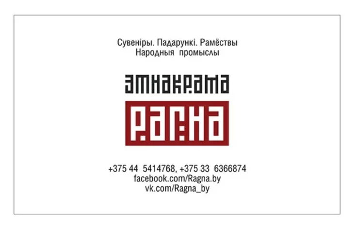 Этнакрама «РАГНА» прапануе сувеніры і падарункі, зробленыя беларускімі мастакамі і рамеснікамі — аўтарскія рэчы ў этнастылі, копіі і рэплікі археалагічных і этнаграфічных рэчаў і ўпрыгожанняў.