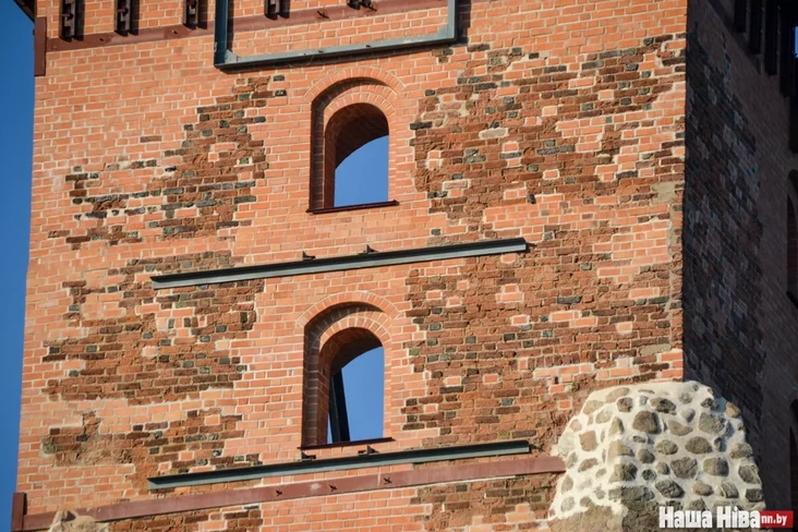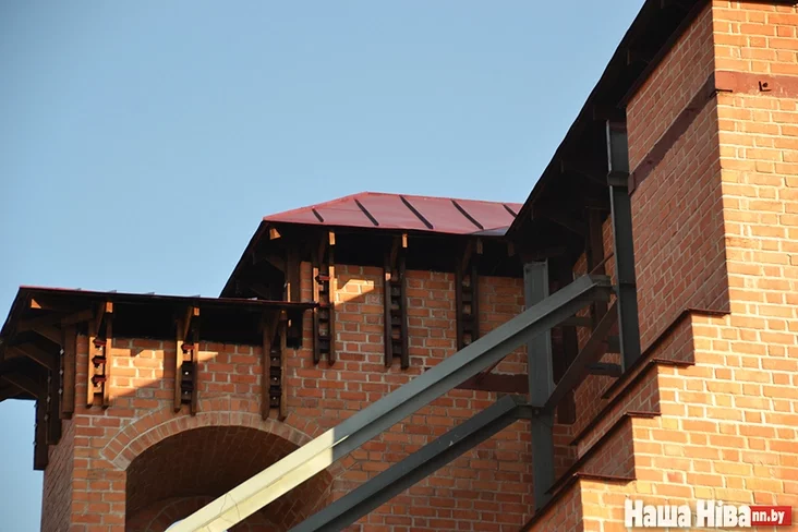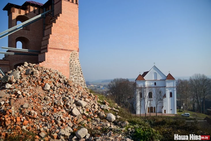 Хто бачыў Навагрудскі замак раней ці толькі на фотаздымках, не пазнаюць яго з боку Касцельнай вежы. На месцы сцяны, што шчацінілася рыштаваннямі, цяпер стаіць збудаванне, якое ззяе новай цэглай.