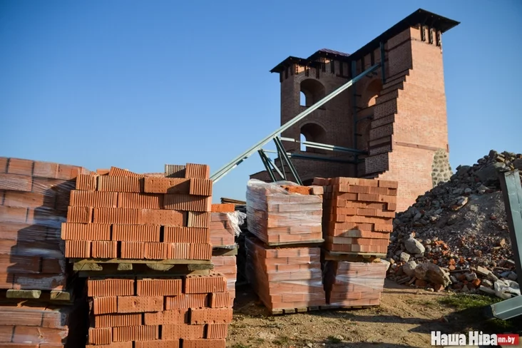 Яшчэ мы зрабілі маленькі дах над вежай, бо не маглі гарантаваць цэласнасць цэглы, хоць нам Гарынскі камбінат зрабіў яе па спецзамове — рэстаўрацыйную цэглу ідэнтычных з кладкай вежы памераў. Арыгінальную кладку мы захавалі, дзе гэта было магчыма. Так, эстэтам можа не падабацца адсутнасць маляўнічых руін, але гэта было адзінае выйсце. Для стварэння падабенства мы выкарысталі спецыяльную рошчыну і захавалі арыгінальны вендскі тып муроўкі, арыгінальную таўшчыню швоў.