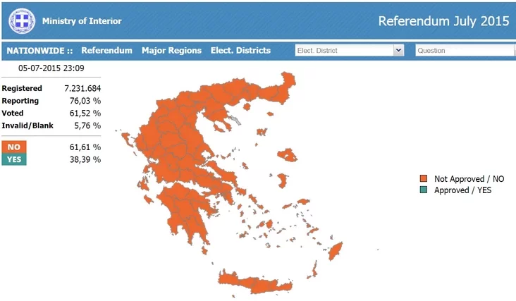 30 чэрвеня Грэцыя не змагла заплаціць доўг ЕС, што паставіла крыж на далейшай праграме дапамогі. Як заявіў 2 ліпеня кіраўнік Еўрагрупы (група міністраў фінансаў краін еўразоны), міністр фінансаў Нідэрландаў Ерун Дэйселблум, «не» на рэферэндуме не дапаможа Грэцыі.