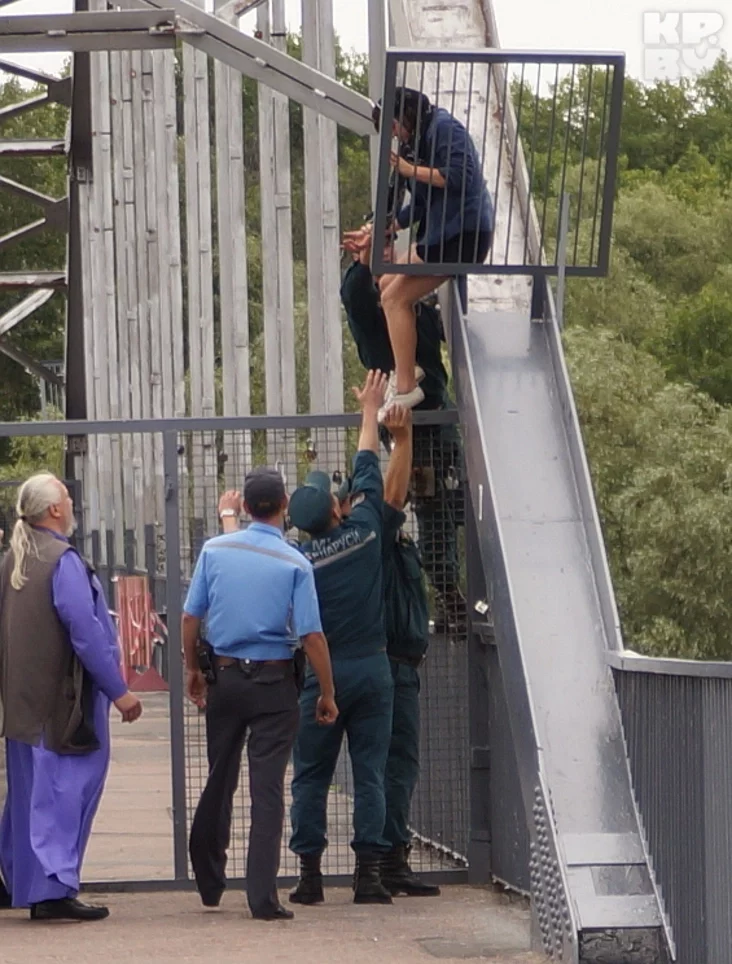 Kp.by дадае, што мост настолькі папулярны ў самагубцаў і эктрэмалаў, што падыход да яго высокай фермы, на якую раней залазілі, каб скокнуць у ваду, прыйшлося заварыць кратамі. Але і яны не перашкодзіла дзяўчыне ўзлезці на самую высокую кропку фермы — 30-35 метраў над ракой.