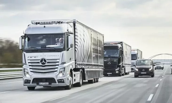 Аўтамабільныя вытворцы распрацоўваюць беспілотныя сістэмы не толькі для легкавых аўтамабіляў, але і для грузавікоў. Канцэрн Daimler нядаўна прэзентаваў аўтаномныя грузавікі, якія здольныя пад кіраваннем аўтапілота самастойна рухацца па грамадскіх дарогах. Грузавікі могуць ісці разам і абменьвацца дадзенымі праз Wi-Fi. Такі ланцужок з беспілотных грузавікоў будзе займаць менш месца, чым ланцужок грузавікоў з кіроўцамі, бо дыстанцыя паміж машынамі скарачаецца з 50 метраў да 15-ці.