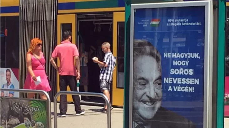 У сталіцы і іншых гарадах Венгрыі з'явіліся надрукаваныя за кошт дзяржаўнай казны плакаты, на якіх 86-гадовы Сорас смяецца. «Не дазвольце Джорджу Сорасу смяяцца апошнім», - абвяшчае надпіс на іх.