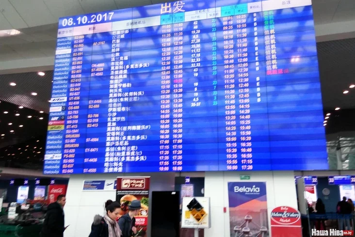 Кітайская версія высвечваецца і на табло з раскладам палётаў.