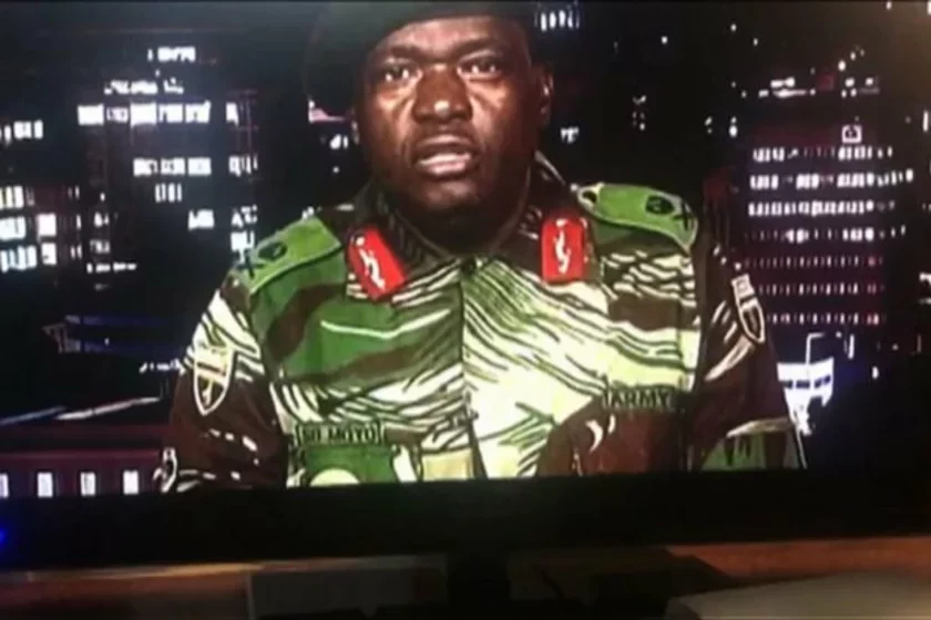 «Мы жадаем запэўніць нацыю ў тым, што ягамосць прэзідэнт і яго сям'я жывыя і здаровыя і іх бяспека гарантаваная», — заявіў у эфіры тэлеканала чалавек у камуфляжы. У гэтым чалавеку апазналі генерал-маёра Моя, які ўзначальвае тылавое ўпраўленне зімбабвійскага генштаба.