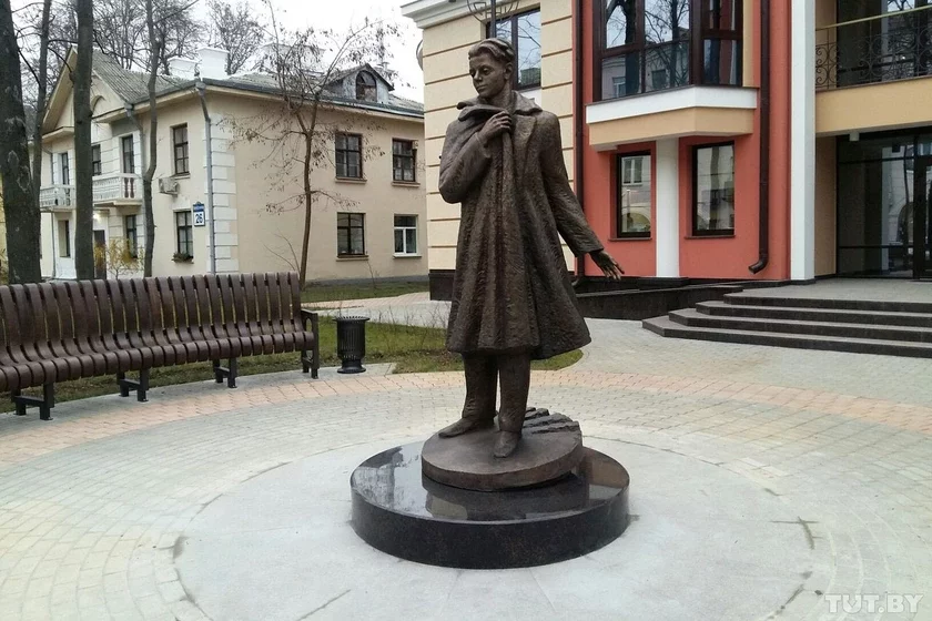Пісьменніку няма помніка ў сталіцы гэтай краіны. Горадзе, дзе ён жыў і працаваў, дзе напісаў свае значныя творы. Можна пачуць дзве версіі таго, чаму помнік, анансаваны Мінкультам яшчэ ў 2010 — 2011 гадах, так і не быў узведзены: афіцыйную і шчырую. І абедзве вас не парадуюць. І вось, напярэдадні дня народзінаў гэтага пісьменніка, у Асмолаўцы, насупраць прыватнага прадзюсарскага цэнтра «Спамаш», звязанага з адным харошым і даволі багатым чалавекам, з’яўляецца нязграбная захутаная ў плашч металёвая фігура. Пра якую гарадскія часопісы паведамляюць, што гэта нібыта ледзь не той самы помнік. Але вось у гэтым «ледзь» і крыецца асноўны нерв сітуацыі.