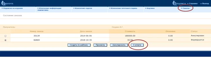 Пераходзім у пункт «Замовы» (уверсе старонкі) і націскаем «Да аплаты».