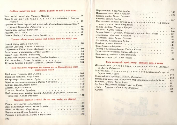 Больш за палову твораў ва ўзятай намі чытанцы было прысвечана Леніну, Камуністычнай партыі, Маскве і Крамлю.