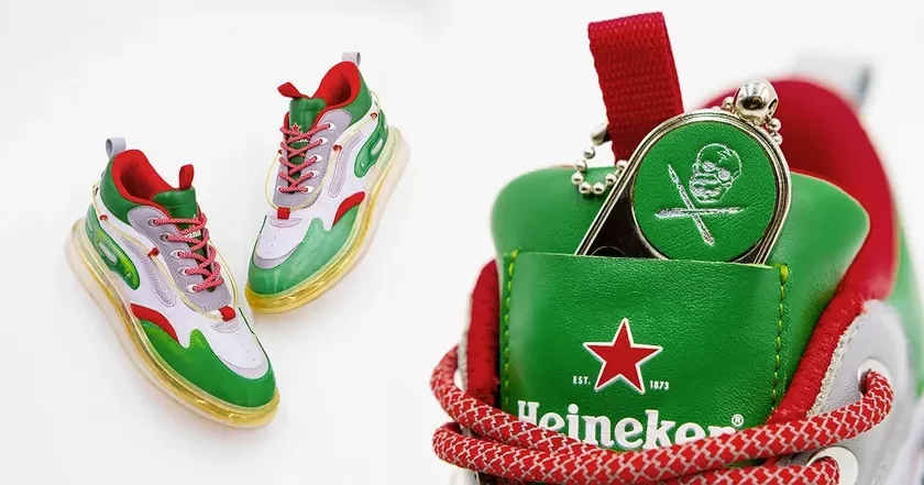 У Heinekicks ёсць некалькі ўнікальных элементаў дызайну. Яны выкананыя ў фірмовых колерах бровара, у кожнай пары таксама ёсць металічная «адкрывалка» для бутэлек.