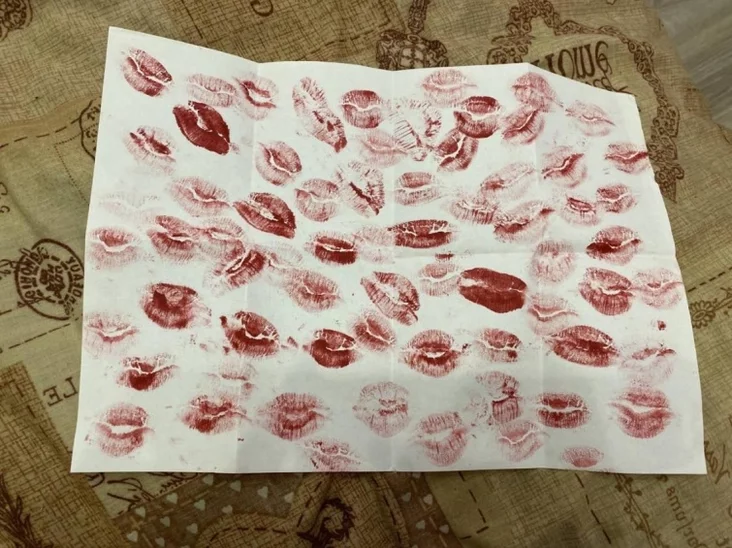 Ала распавядае, што абяцала на сустрэчу нафарбаваць вусны чырвонай памадай. «Пазаўчора, яшчэ калі ён быў жывы, я зрабіла гэта, каб укласці яму ў навагодні ліст ад рукі. Цяпер пакладу ў магілу перад крэмацыяй. Думаю, яму спадабаецца», — апісвае ліст, запоўнены адбіткамі вуснаў у чырвонай памадзе.