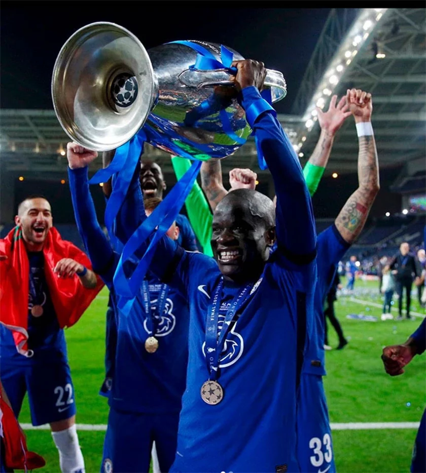 Н'Гало Кантэ стаў чэмпіёнам Англіі з «Лестэрам» (2016) і «Чэлсі» (2017), выйграў з лонданцамі Лігу Еўропы (2020) і Лігу чэмпіёнаў (2021), стаў чэмпіёнам свету са зборнай Францыі (2018). Фота з яго інстаграма.