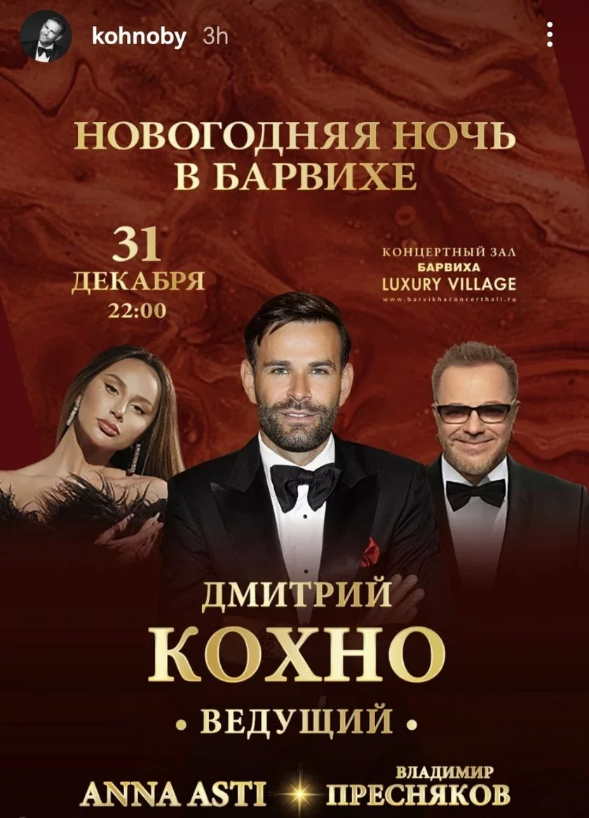 Кахно будзе вядоўцам навагодняй ночы ў элітнай падмаскоўнай Барвісе, дзе выступіць Праснякоў