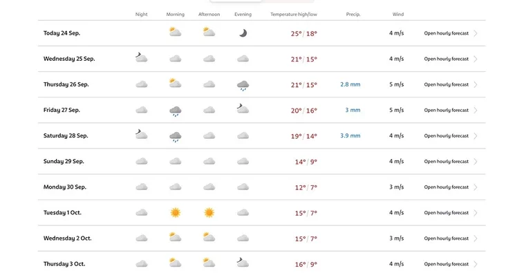 Надвор'е ў Мінску на наступныя дні паводле сэрвісу yr.no