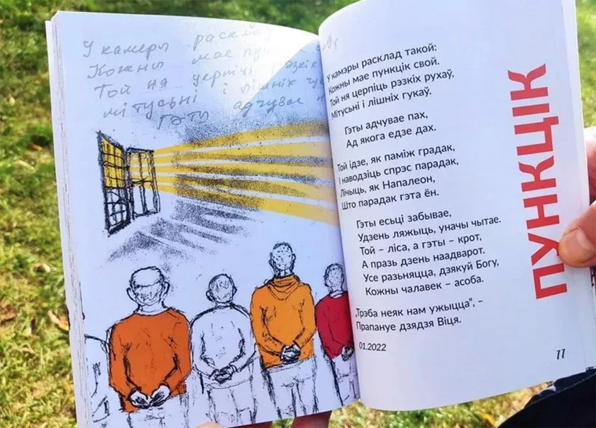 — Гаворка ідзе ад асобы вязня дзядзі Віці — пажылога чалавека прыкладна майго ўзросту, які патрапіў у турму і рэфлексуе на тое, што адбываецца вакол. У кнізе ўсяго 28 вершаў, і толькі адзін з іх напісаны пасля вызвалення ў 2024 годзе, але паводле падзеяў, якія адбываліся на Валадарцы. Астатнія строфы, як і малюнкі, зробленыя ў турме, — распавёў журналісту БАЖ аўтар.