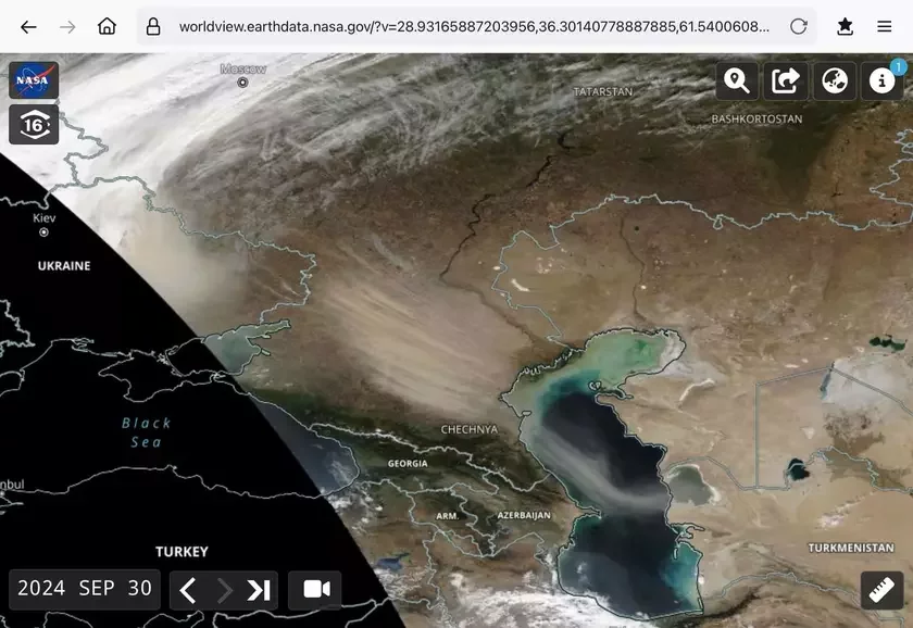 З прыкаспійскіх стэпаў моцным ветрам паднята шмат пылу, які прыкметна распаўсюджваецца па рэгіёне. Паколькі на тэрыторыях Казахстана і Туркменістана назіраюцца моцныя вятры, то гэты пыл будзе распаўсюджвацца далей і, падобна, дойдзе да Беларусі, піша тэлеграм-канал @nadvorie.