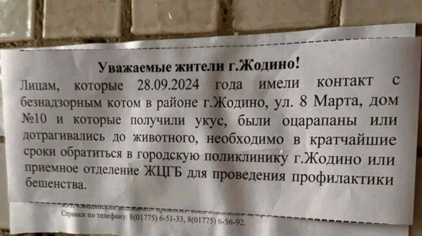 Уладальнікі сабакі, не адкладаючы, звярнуліся ў ветэрынарную станцыю ў суседніх Смалявічах. Пасля аналізу ветэрынары пацвердзілі падазрэнні — у ката было шаленства.