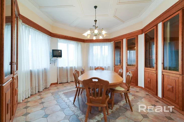 Цяпер на Realt тут прадаюць кватэру на апошнім, пятым паверсе. Плошча — 194 квадратныя метры.