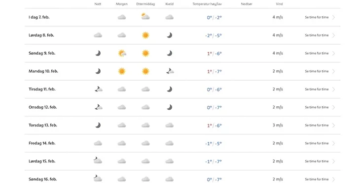 Надвор'е ў Мінску на наступныя дні паводле yr.no