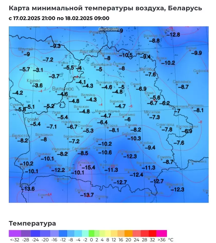 На станцыі «Палеская» было зафіксавана мінус 15,4°С.