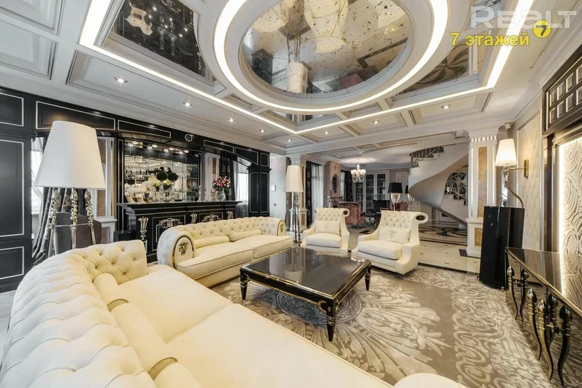 Гэта двухузроўневая кватэра з дызайнерскім рамонтам, «разумным домам» і італьянскай мэбляй. Столі вышынёй 3 метры. Жыллё — у доме з павышаным узроўнем бяспекі і сістэмай відэаназірання. Раней у кватэры ніхто не пражываў, сцвярджае прадавец.