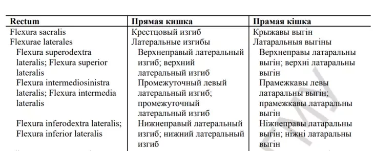 Сёння ў медыцынскай тэрміналогіі ён скарачаецца да проста rectum. Некаторыя прэпараты неабходна ўводзіць per rectum, то бок рэктальна — праз анус у прамую кішку.