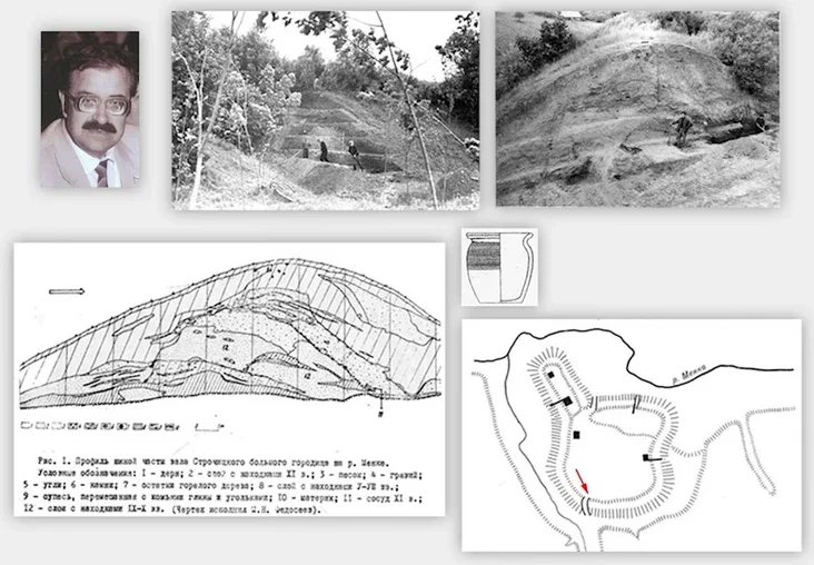 На глыбіні 5 метраў пачалі з’яўляцца чорныя глеістыя праслойкі, на якія наплывае пясчаны насып і які Штыхаў памылкова прыняў за сляды пажарышчаў.
