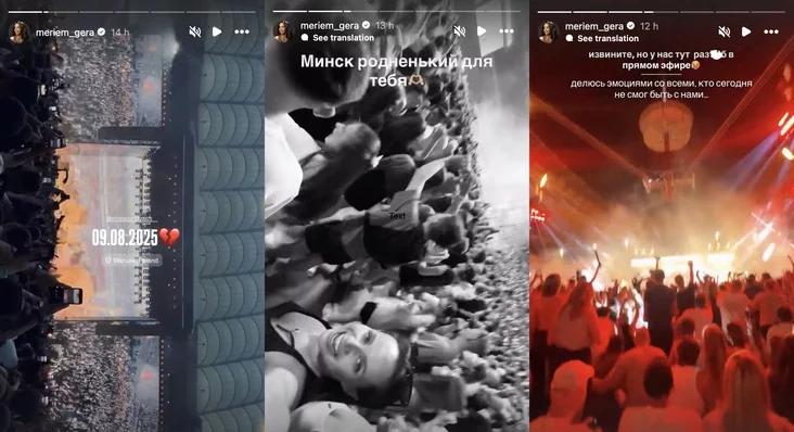 Спявачка Мэрыем Герасіменка апісала ў сваіх сторыс канцэрт Каржа як «неверагодны глыток паветра». Эмоцый у дзяўчыны было так шмат, што яна не стрымлівала сябе ні на стадыёне, ні ў сацсетках.