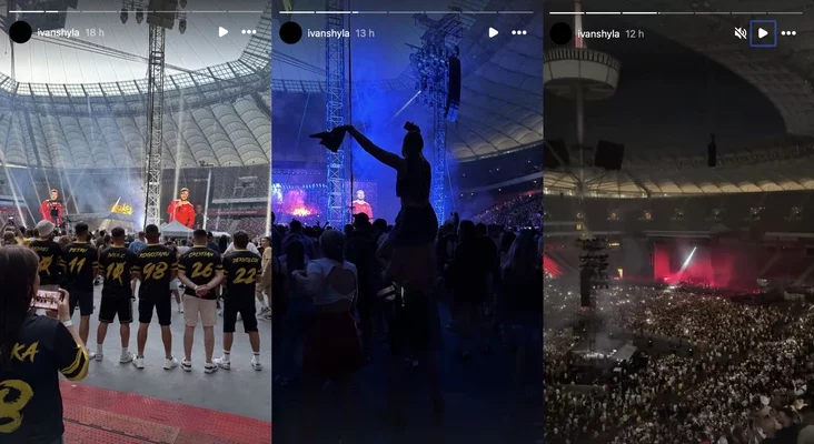 Фатографы Яўген Канаплёў і Юлія Лейдзік таксама не прайшлі міма вялікай музычнай падзеі. На варшаўскім стадыёне яны запісалі некалькі атмасферных сторыс — падобна, што яшчэ да пачатку канцэрта на стадыёне было на што паглядзець.