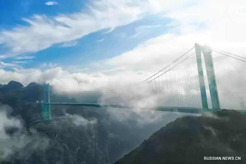 Самы высокі ў свеце адкрылі ў правінцыі Гуйчжоу на паўднёвым захадзе Кітая, паведамляе кітайскае агенцтва «Сіньхуа». Рух па новым мосце дазволіць скараціць час у дарозе праз цясніну з двух гадзін да ўсяго толькі двух хвілін пасля трохгадовага будаўніцтва.