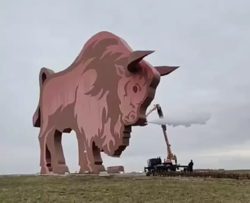 Скульптура зубра на 117‑м кіламетры трасы М1 каля вёскі Петкавічы павінна стаць яшчэ больш інтэрактыўнай.