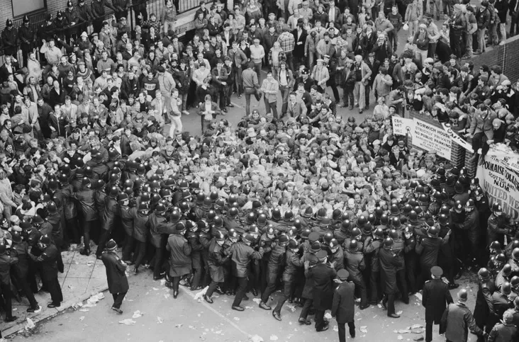 Асабліва жорсткай была яе барацьба з прафсаюзамі, у якіх яна бачыла галоўную перашкоду для мадэрнізацыі. Яе ўрад прыняў шэраг законаў, якія істотна абмежавалі паўнамоцтвы прафсаюзаў. А кульмінацыяй стала забастоўка шахцёраў 1984—1985 гадоў — найбуйнейшы сацыяльны канфлікт у пасляваеннай гісторыі Брытаніі. Пасля года супрацьстаяння прафсаюз пацярпеў паразу: шматлікія нерэнтабельныя шахты былі зачыненыя, а ўплыў трэд-юніёнаў назаўсёды аслаб.