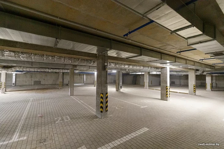 Пад домам прадугледжаны двухузроўневы падземны паркінг — гэта таксама прыкмета прэміяльнасці. Дзіцячая пляцоўка выглядае даволі стандартна.