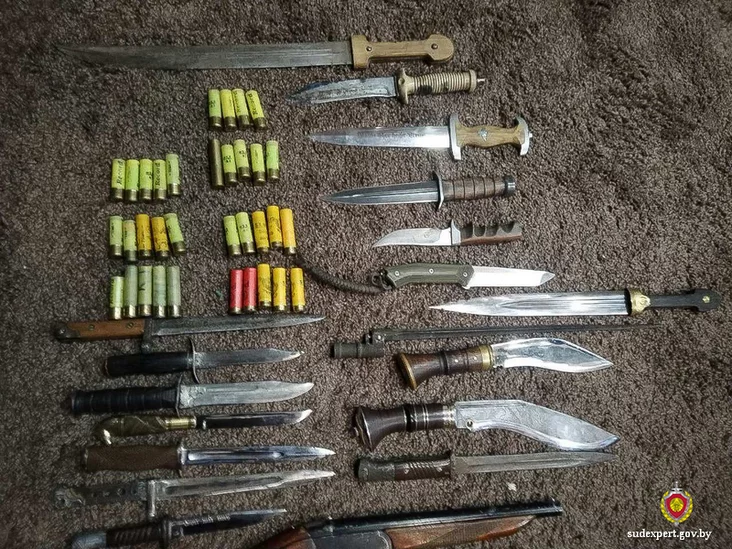 Амаль два дзясяткі нажоў і штыкоў, патроны і абрэз стрэльбы знайшлі дома ў 51‑гадовага жыхара Магілёўскага раёна супрацоўнікі 11‑га ўпраўлення ГУБАЗіКа.