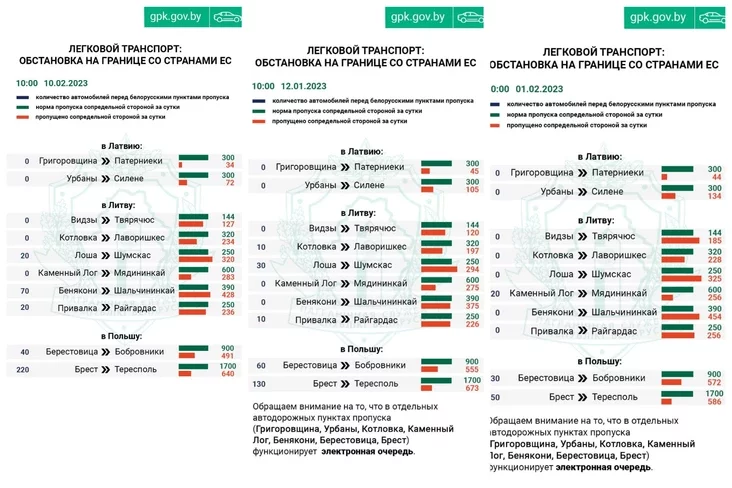 Бывалі і больш «прадуктыўныя» дні: 12.01.2023 года (фактычна за месяц да закрыцця) было аформлена 555 легкавікоў у адзін бок, а 1 лютага 2023 — 572.