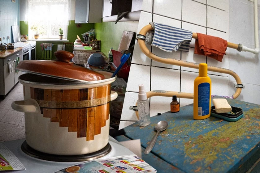 «Паміж мной і душам усяго адна цэгла. Ніякай гідраізаляцыі. Калі ў мінулым годзе я атрымаў дагавор на арэнднае жыллё, дзе прапісана, што ў мяне ўсё добра, вырашыў, што так гэта не пакіну», — распавядае Мурат, паказваючы першую новую жыроўку на 963 рублі.