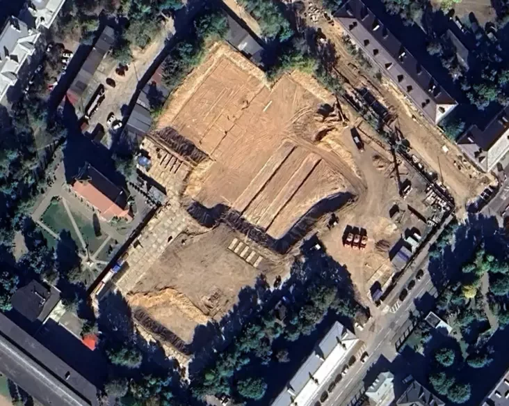 Новыя здымкі пацвярджаюць, што ранейшыя ацэнкі маштабаў гэтай амаль сакрэтнай будоўлі былі дакладнымі: гіганцкі катлаван «праглынуў» практычна ўсю вольную тэрыторыю квартала. Гэта азначае, што пад каўшамі экскаватараў апынулася большая частка гістарычных Залатагорскіх могілак, якія існавалі тут яшчэ з канца XVIII стагоддзя.