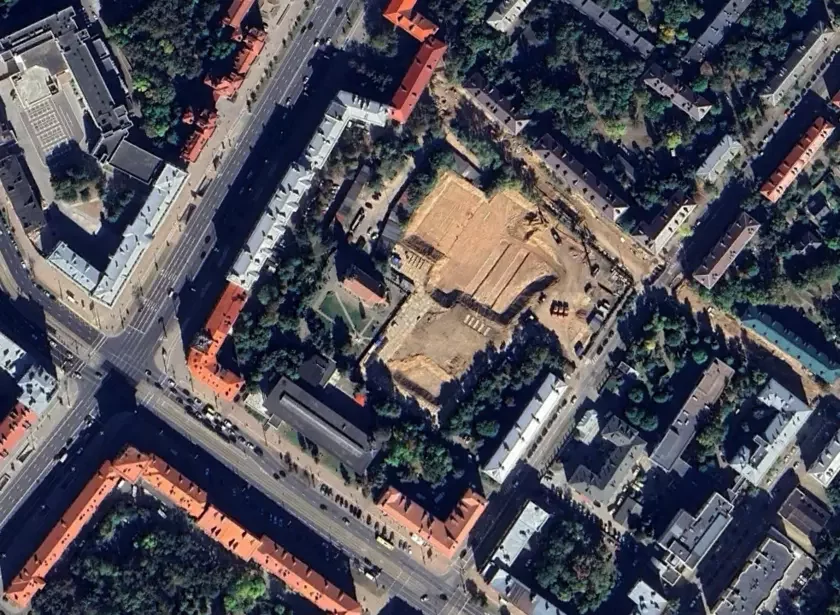 Адна з самых прыкметных плям на спадарожнікавых фота — квартал за касцёлам Святой Тройцы (Святога Роха) на Залатой Горцы. Тут вядзецца будаўніцтва новага корпуса Акадэміі нацыянальнай бяспекі — установы, якая рыхтуе кадры для КДБ.