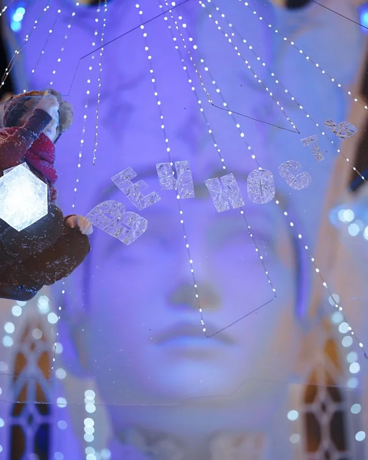 Інсталяцыя мае мноства дэталяў, якія нагадваюць пра сюжэт казкі. Проста перад тварам гіганцкай каралевы, на тонкай празрыстай ільдзіне, сядзіць маленькі Кай.
