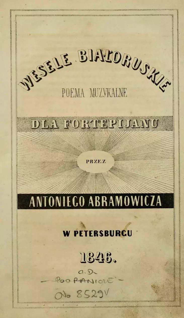 Вокладка музычнай паэмы для фартэпіяна «Беларускае вяселле» беларускага кампазітара Антона Абрамовіча, змешчанай у трэцім выпуску альманаха «Rocznik Literacki»