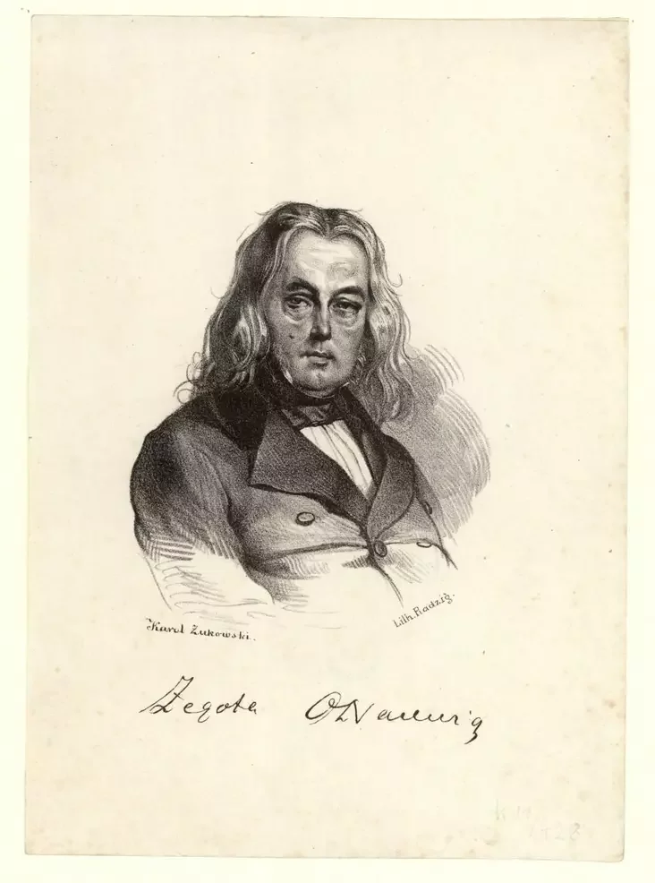 Партрэт працы Караля Жукоўскага з рукапісным аўтографам Żegota O'Nacewicz. Фота: polona.pl