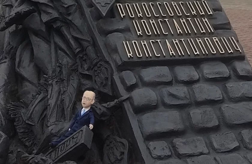Расіяне ў Гомелі захацелі ўчыніць міжнародны скандал. Што за таямнічая лялька была на помніку Ракасоўскаму