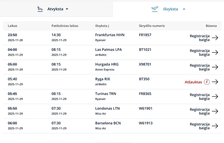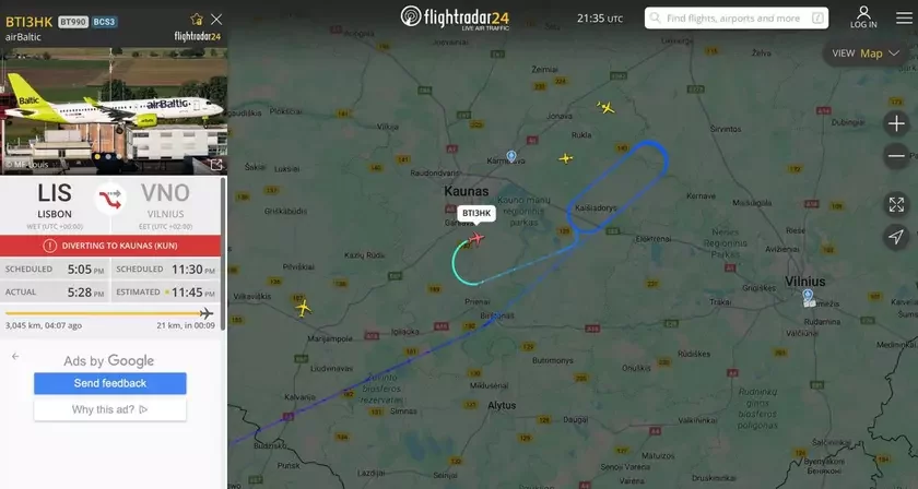 Некалькі самалётаў былі адпраўленыя ў Коўна, а самі рэйсы ў Вільні адкладзеныя да 08:15.