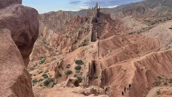 Пераначавалі ў сяле Баканбаева, а раніцай паехалі паглядзець каньён «Казка» з пяску і каменю чырвонага колеру.