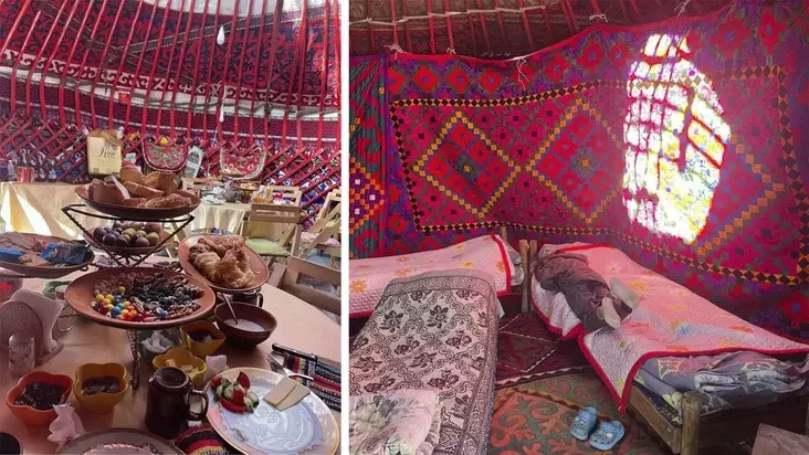 «Самым дарагім варыянтам жылля сталі апартаменты ў Чалпон-Аце, за тры ночы аддалі €220. Юрта на Сон-кулі каштавала 56 еўра за ноч, але калі выбірала, бачыла, што і па €100 ёсць. У суму ўваходзілі сняданак і вячэра. Кватэра ў Бішкеку — €35, у іншых месцах спыняліся ў хостэлах — у сярэднім па €30-35. Усюды было вельмі камфортна, а прыязныя гаспадары ўсё расказвалі і паказвалі».