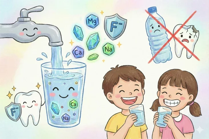 Водаправодная вада, у сваю чаргу, звычайна змяшчае карысныя мінералы, што добра задакументавана ў даследаваннях грамадскага здароўя. У Вялікабрытаніі і іншых краінах у некаторыя сістэмы дадаюць фтор для прафілактыкі карыесу. Мінеральны склад бутыляванай вады моцна адрозніваецца, і даследаванні паказваюць, што дзеці, якія часцей п'юць ваду з бутэлек, маюць вышэйшы ўзровень карыесу.