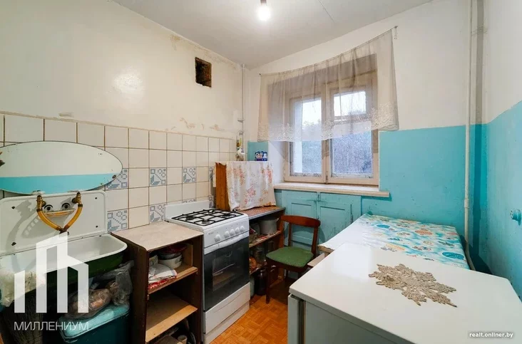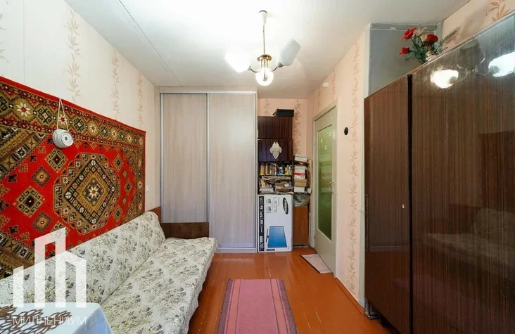 Абстаноўка класічная для старога фонду: драўляная падлога, дыван на сцяне, мэбля, якая бачыла не адно пакаленне жыхароў. Заехаць можна адразу, калі не хочацца траціцца на рамонт: у кватэры ёсць усё самае неабходнае.