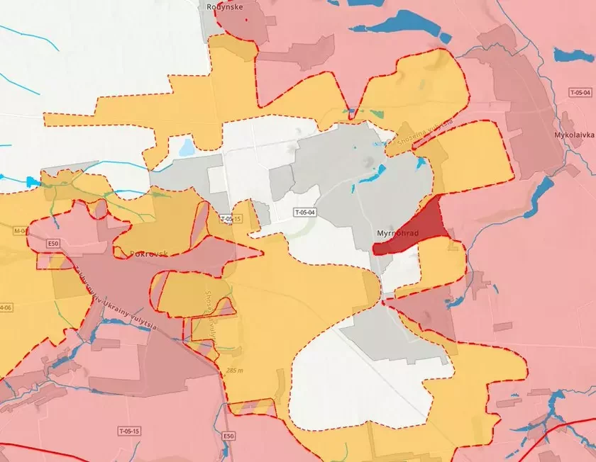 Скарэктаваная карта ваенных дзеянняў у Мірнаградзе. Фота: 0xinternetchild /Х