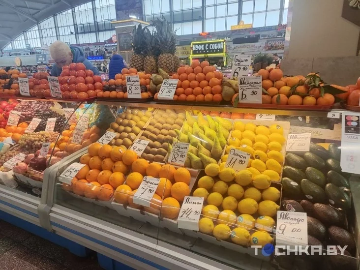 Навагоднія ананасы каштуюць Br12, 9—30 за 1 кг. Шмат і цытрусавых. Апельсіны можна знайсці па вельмі прыемных цэнах — Br4,9—25, лімоны — Br4,9—30.