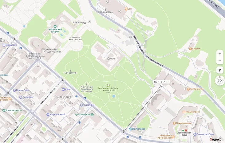 Побач знаходзяцца Вярхоўная рада і Марыінскі палац.