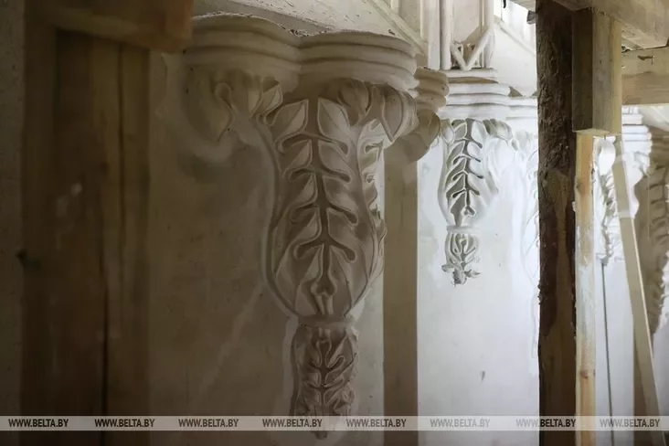 Самай складанай задачай стала аднаўленне ўнікальнага ляпнога дэкору інтэр'ера — тых самых знакамітых нервюр, якія ствараюць эфект ажурнага павуціння пад столлю. Скульптары і мастакі, сярод якіх быў вядомы майстар Павел Рабаў, гадамі працавалі ў складаных умовах, каб вярнуць гіпсавым элементам першапачатковы выгляд.